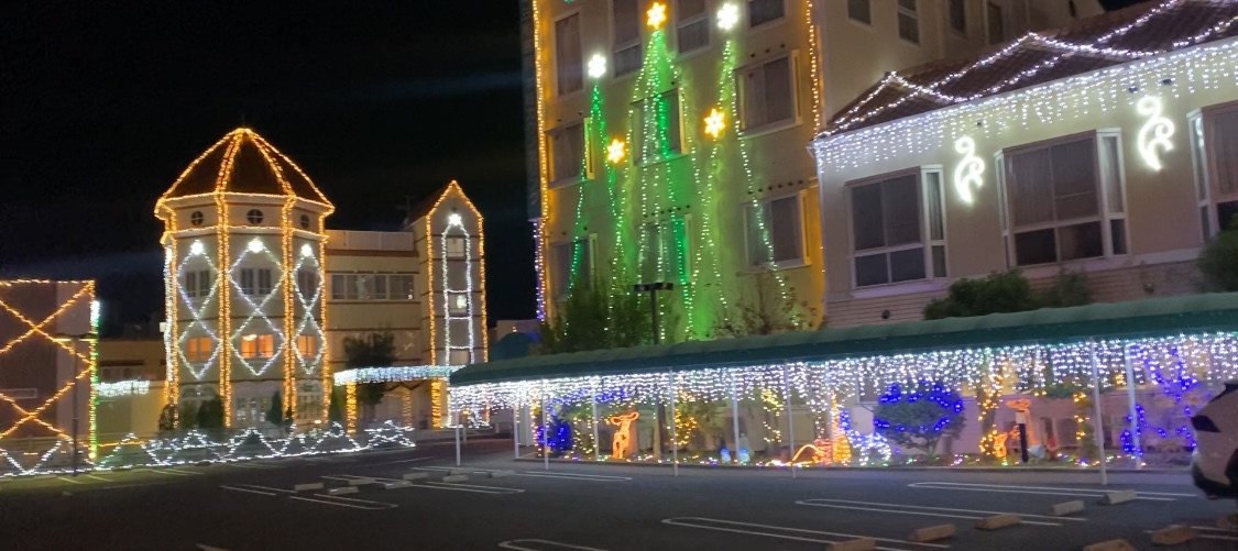 当社で設置工事をしたイルミネーションも綺麗に冬の夜空を輝かせてくれています✨